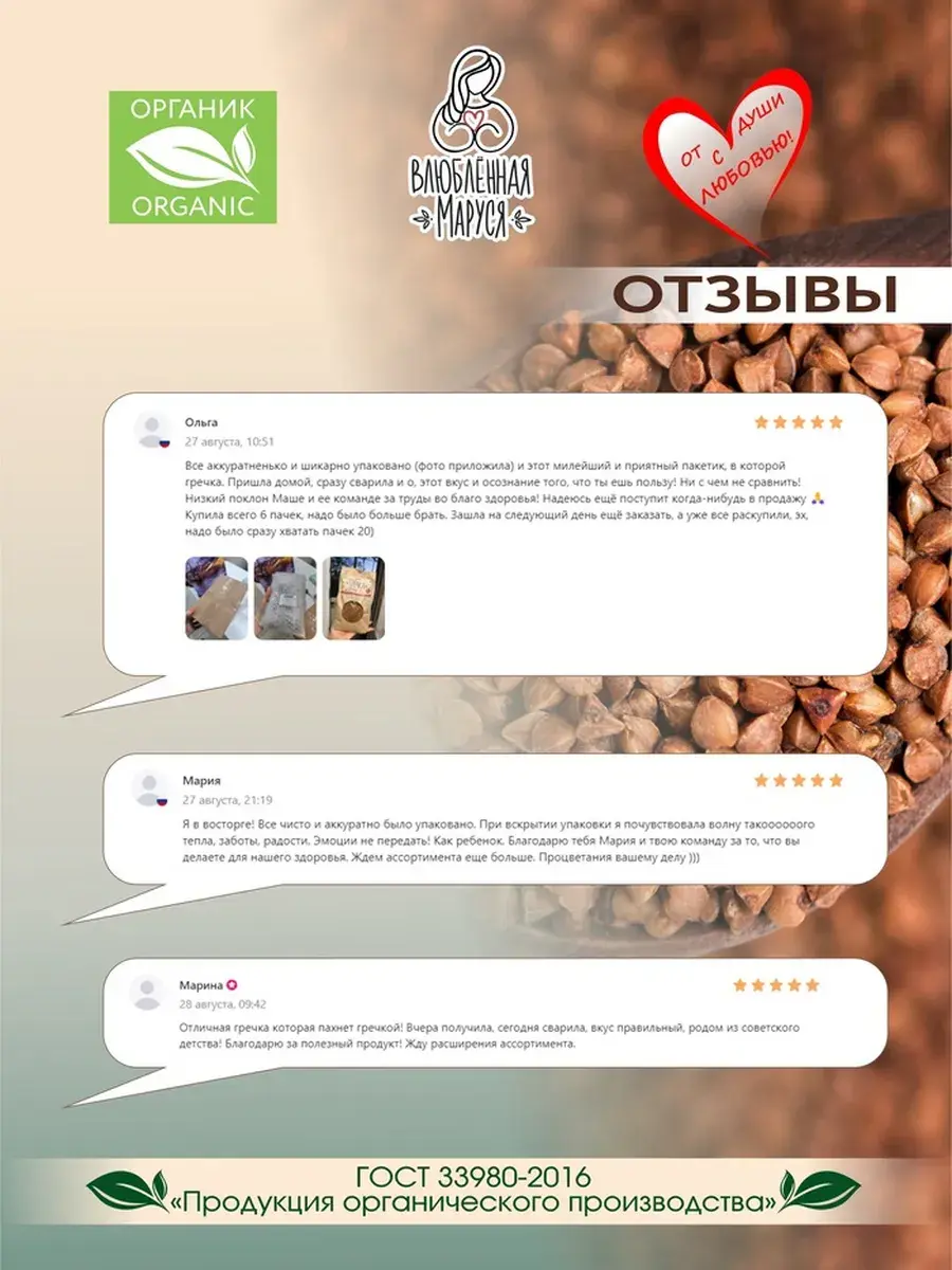 Гречка «Влюбленная Маруся» - 100% чистый, органический продукт, подтвержденный сертификацией ORGANIC.
