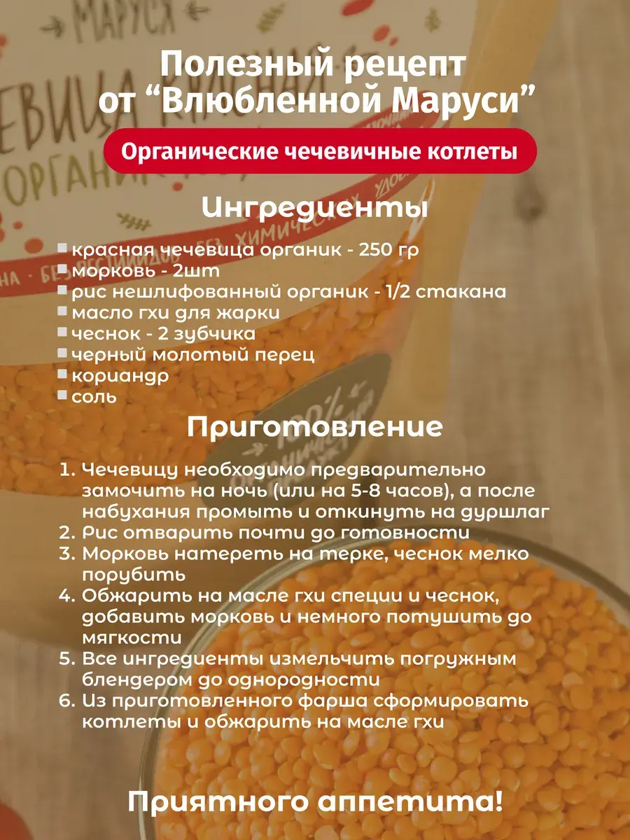 Состав: зерно чечевицы красной, органик.