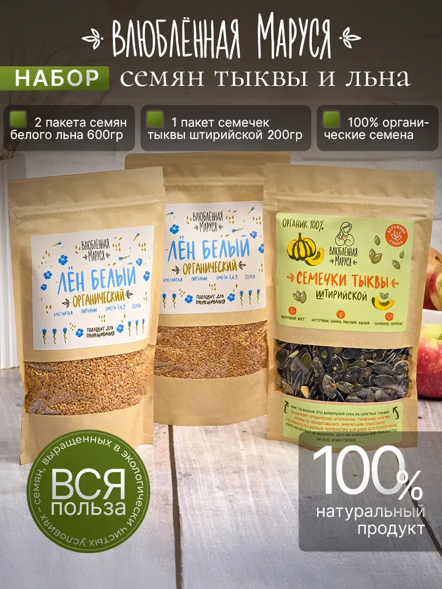 Этот набор — маленький праздник для вашего здоровья! В нём органический белый лён и семена тыквы — продукты, которые дарят силу, энергию и гармонию.