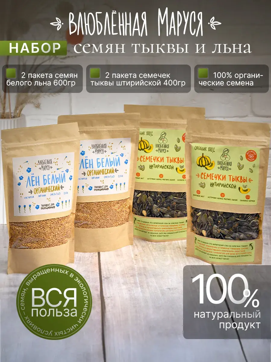 Этот набор — маленький праздник для вашего здоровья! В нём органический белый лён и семена тыквы — продукты, которые дарят силу, энергию и гармонию.
