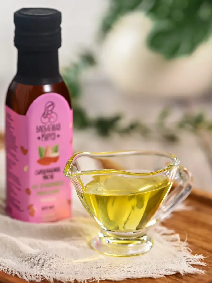 - Миндальное масло. Высочайшего качества миндальное масло, полученное методом холодного отжима, сохраняет все витамины и питательные вещества, присущие свежему миндалю. Оно богато витамином Е — мощным антиоксидантом, поддерживающим молодость и защиту клеток. Омега-9 жирные кислоты способствуют укреплению сердечно-сосудистой системы. Это масло — идеальный выбор для питания и увлажнения кожи, придавая ей мягкость и упругость, а волосам — блеск и силу. Идеально для внутреннего и внешнего использования, чтобы подчеркнуть естественную красоту и здоровье.