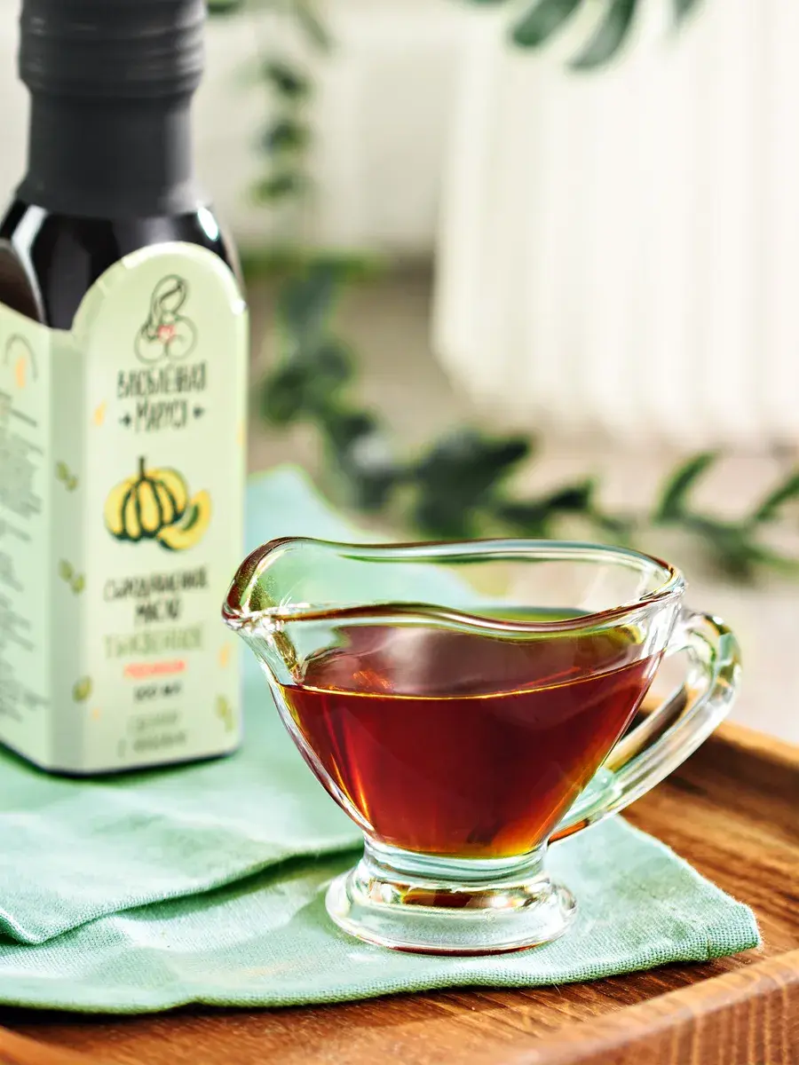 - Тыквенное масло. Откройте для себя смягчающий шепот тыквенных полей с нашим уникальным тыквенным маслом. Его орехово-бархатный аромат и нежный вкус позволят раскрыть естественную красоту ваших блюд. Богатое цинком и антиоксидантами, это масло оказывает благотворное влияние на мужской организм и иммунную систему. Погрузитесь в невероятную гармонию природы и здоровья с каждым блюдом, обогащая ваш рацион природными витаминами и микроэлементами.