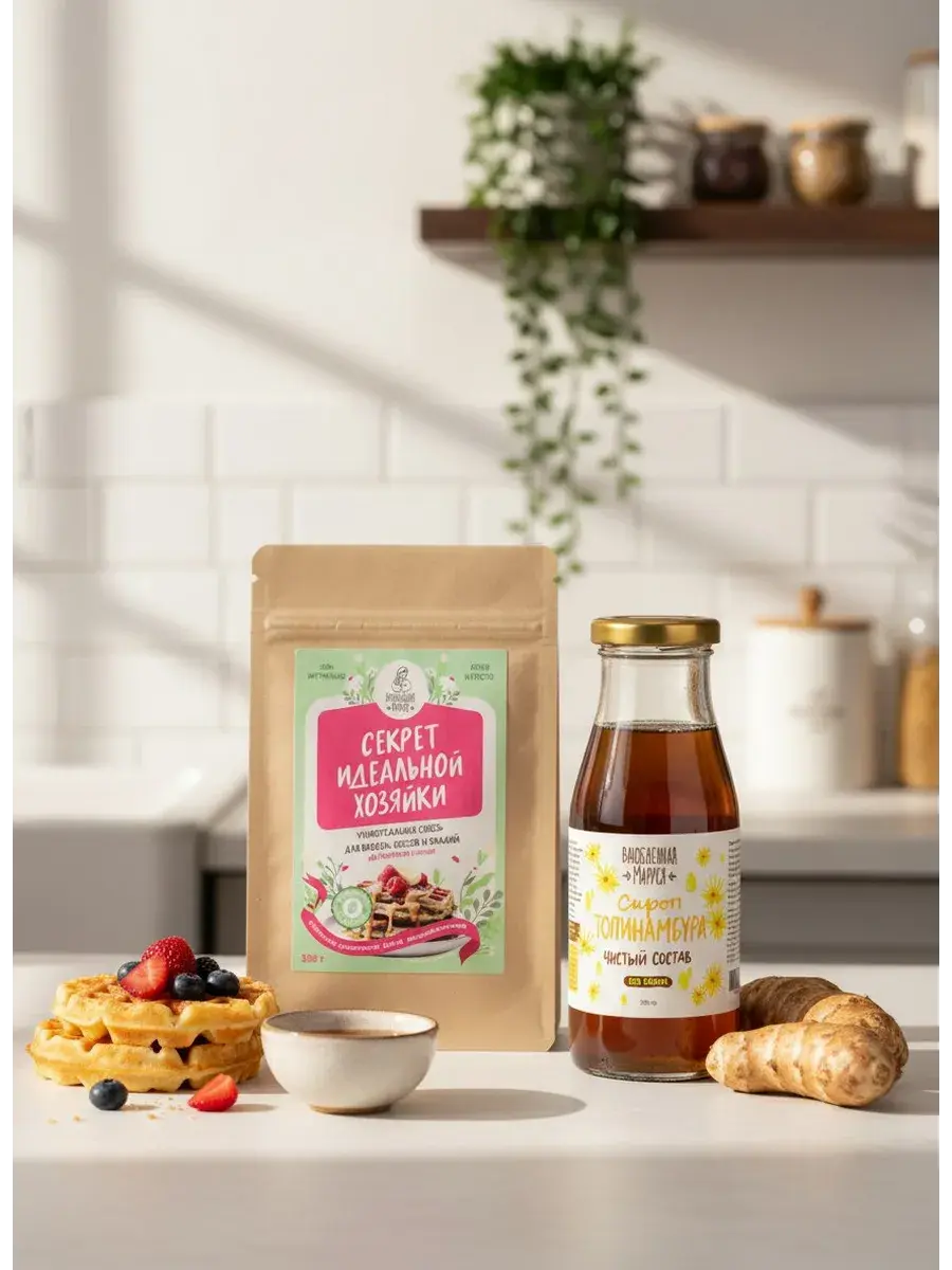 Представляем вам идеальный дуэт для создания восхитительных десертов — смесь для выпечки «Секрет идеальной хозяйки» и натуральный сироп топинамбура.