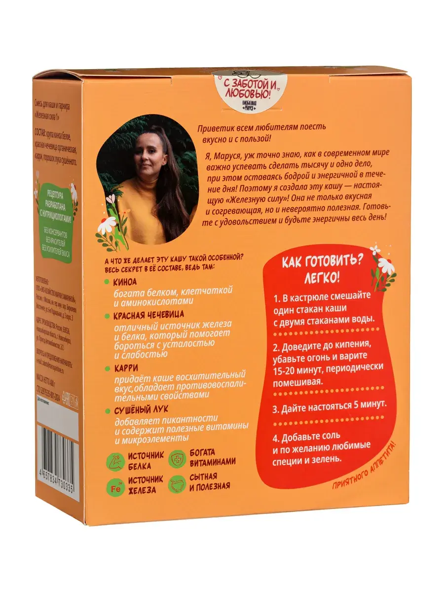 Совет от Маруси: "Чтобы железо лучше усваивалось, добавьте в готовую кашу немного лимонного сока или свежую зелень!”
