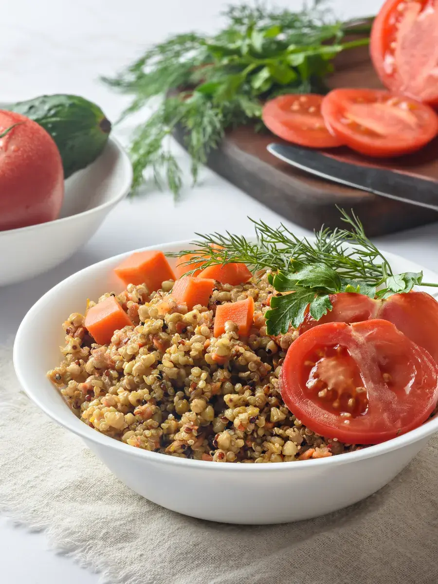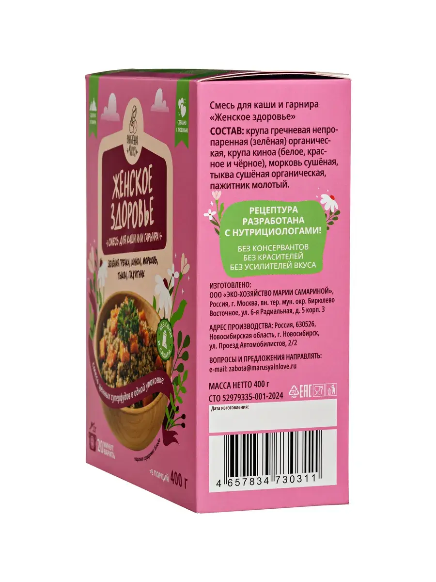 Состав: Крупа гречневая зеленая органическая, крупа киноа, морковь сушеная, тыква сушеная органическая, пажитник молотый.