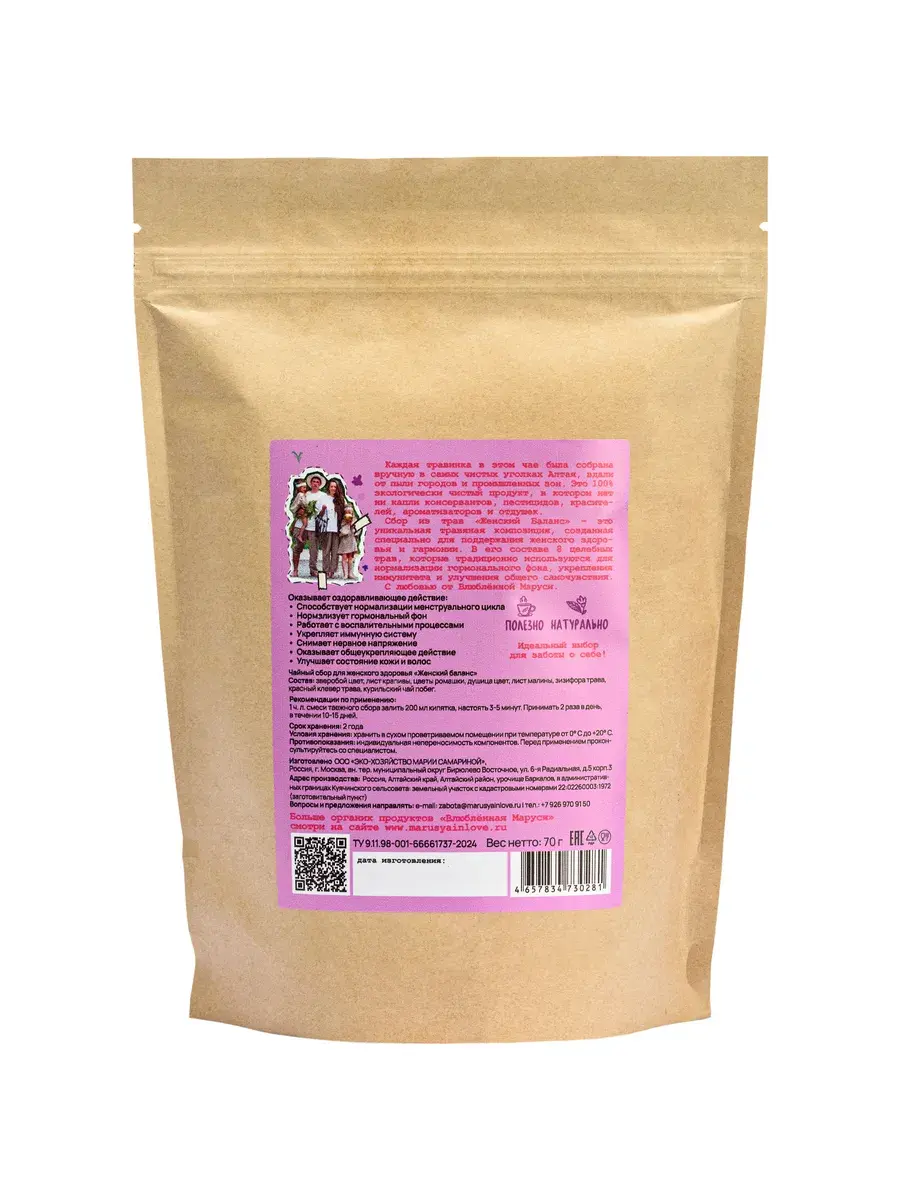 Сбор «Женский Баланс» — это уникальная травяная композиция, созданная специально для гармонии и здоровья женщин. В его составе – 8 целебных трав, которые традиционно используются для нормализации гормонального фона, укрепления иммунитета и улучшения общего самочувствия.
